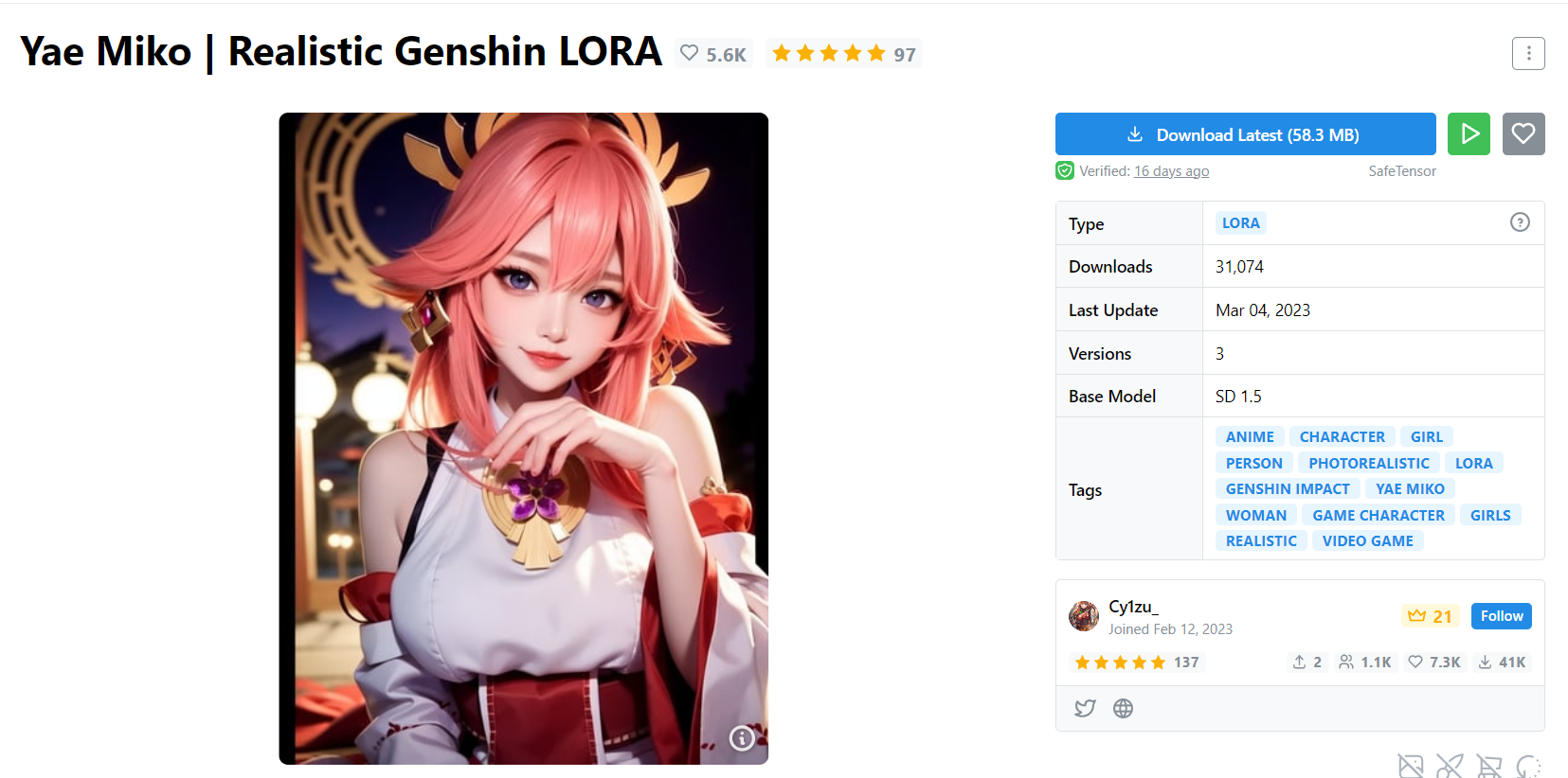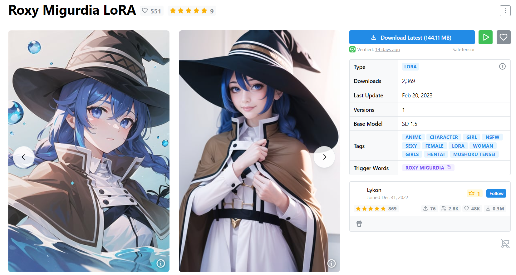 LoRA 是一种微调模型,可以让我们生成某些特定角色,非常实用,一般后缀为 pt (或者 safetensors),一般为几十 M 或者一两百 M